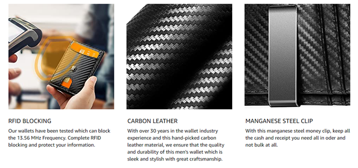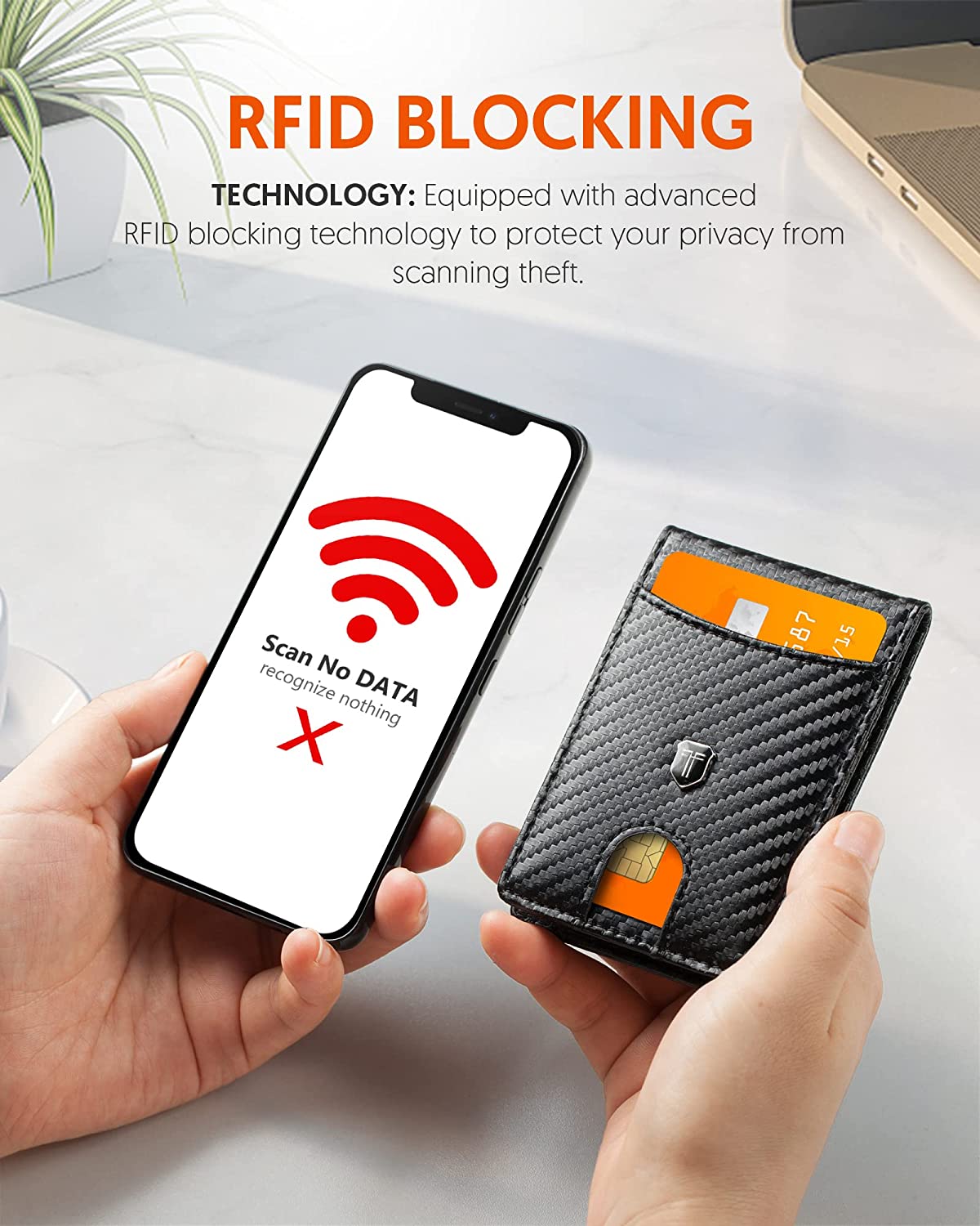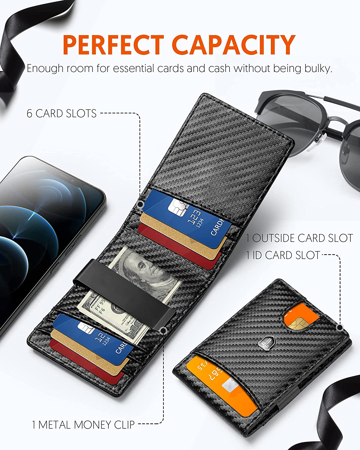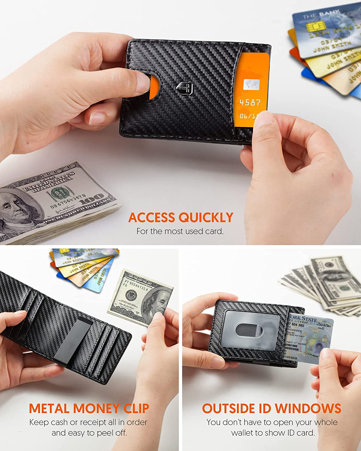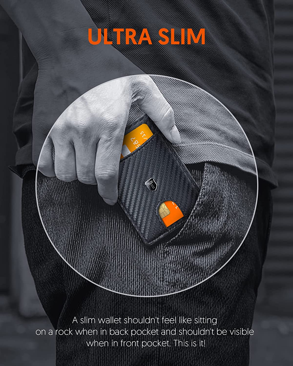 • Ultra Slim & Multifunctional - Best slim wallet which measures only 3.9x2.76x0.34 inches. A slim wallet for men which has enough room for essential cards and cash without being bulky. The pocket in the front for the most used card which can access and get it out quickly. There is also another outside pocket for an ID card so you don’t have to open your whole wallet.