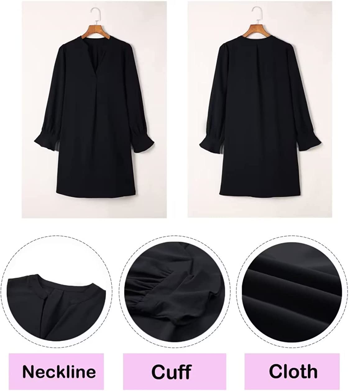 ✿Features: Knee length dress, V-neck, ruffle sleeves, shift dress, solid color, simple and plain,soft and attractive.Can be used as maternity dress。