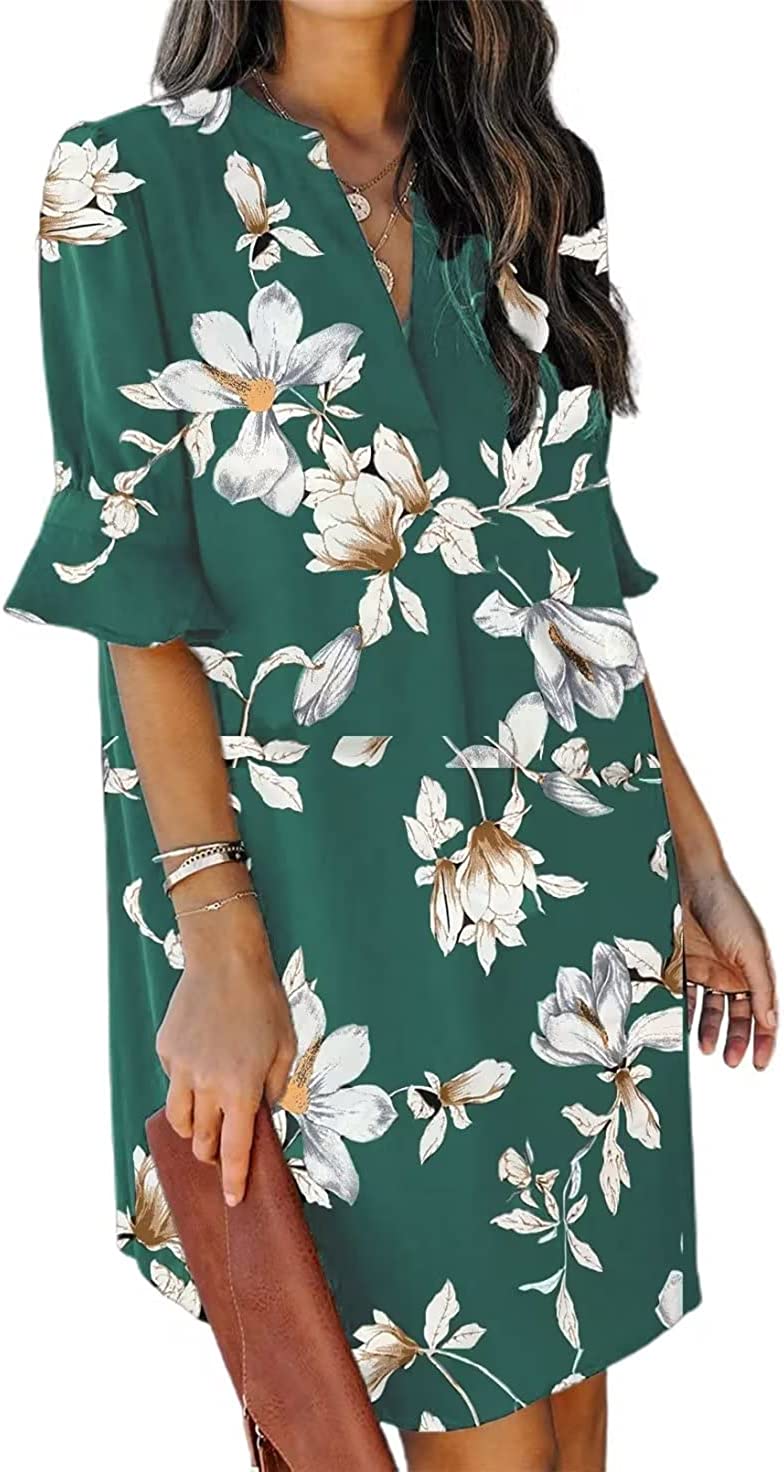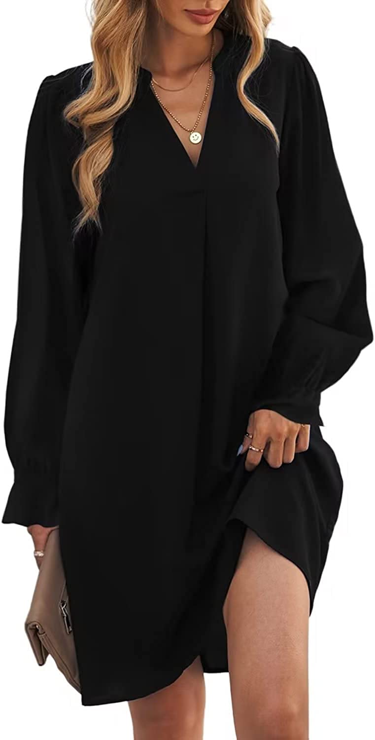 JOCAFIYE Women's Casual Dresses Short/Long Sleeve V-Neck Dress Casual Loose Shift Dresses