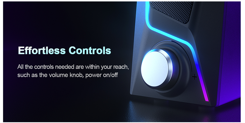 - 【Easy to Control】Turn pc speakers on/off and adjust volume smoothly with 0ne simple knob. No need to use multiple buttons or computer to adjust the volume.