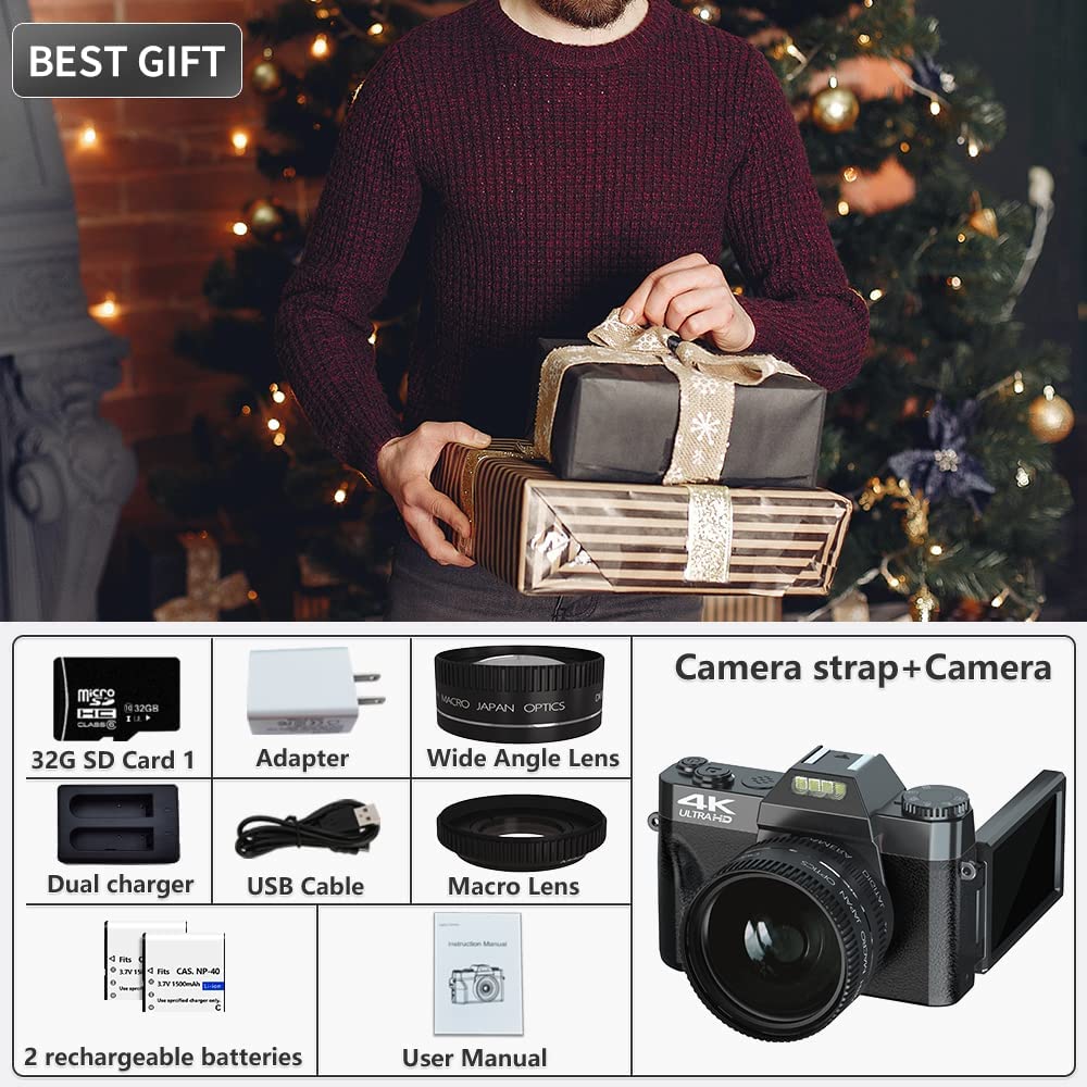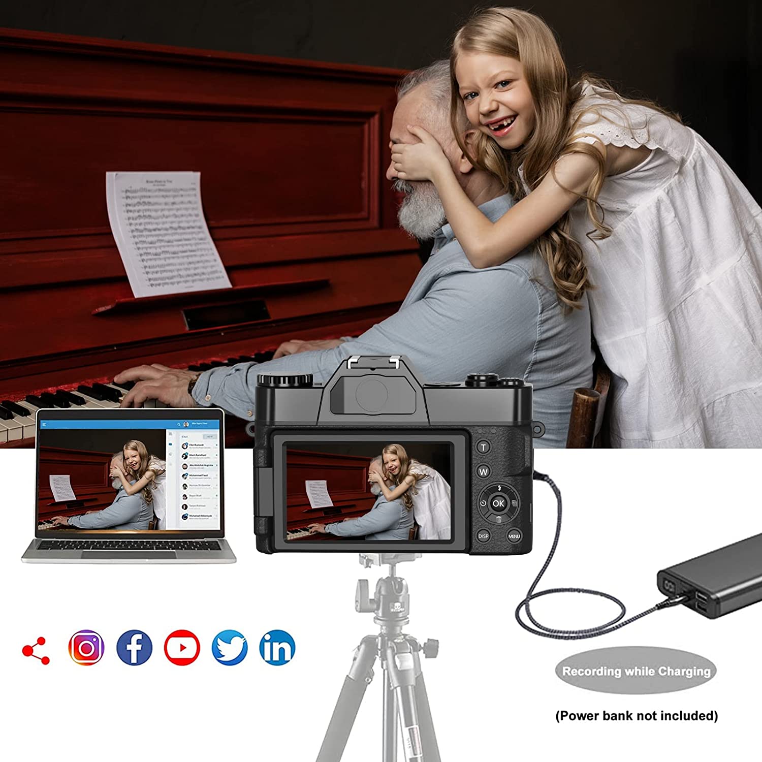 - ?【Camera for Photoggraphy and Video】The digital camera featuring 4K video and 48MP photo resolution, the vlogging camera supports 16X Digital Zoom, Video Pause, Recording while Charging, Loop Recording, Continuous Shooting, Silent Recording, Self-Timer. with the latest upgraded chip to ensure the camcorder images more high-definition, more realistic. It’s the best gift for friends and family.