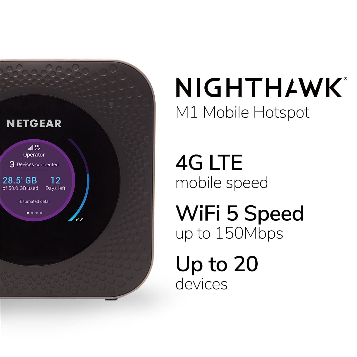 NETGEAR Nighthawk M1 4G LTE WiFi Mobile Hotspot (MR1100-100NAS) – Up to 1Gbps Speed, Works Best with AT&T and T-Mobile, Connects Up to 20 Devices, Secure Wireless Network Anywhere
