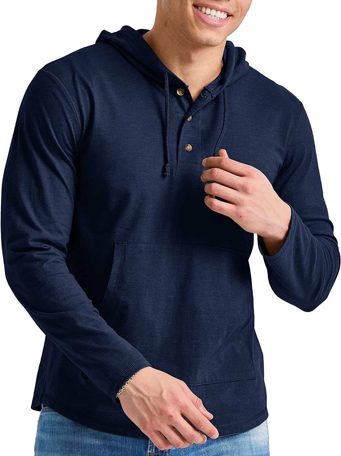 DESIGN DETAILS - 3-button Henley placket, kanga pockets, and knotted drawcords for that Hanes quality you expect.