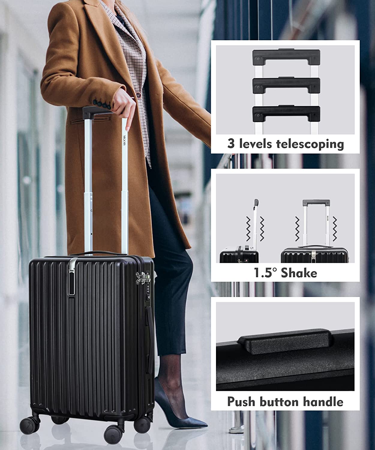 MGOB 24 Inch Luggage, Suitcases with Spinner Wheels, Checked Luggage with TSA Lock, Hard Case Luggage with Expandable, Black Lightweight Luggage