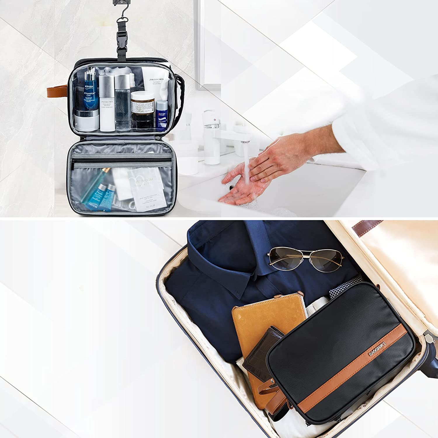 BAGSPRITE Toiletry Bag for Men, Travel Bag for Toiletries, Mens Toiletry Bag Shaving Dopp Kit Organizer, Large Water-resistant Travel Bathroom Bag for Traveling, Black/Brown