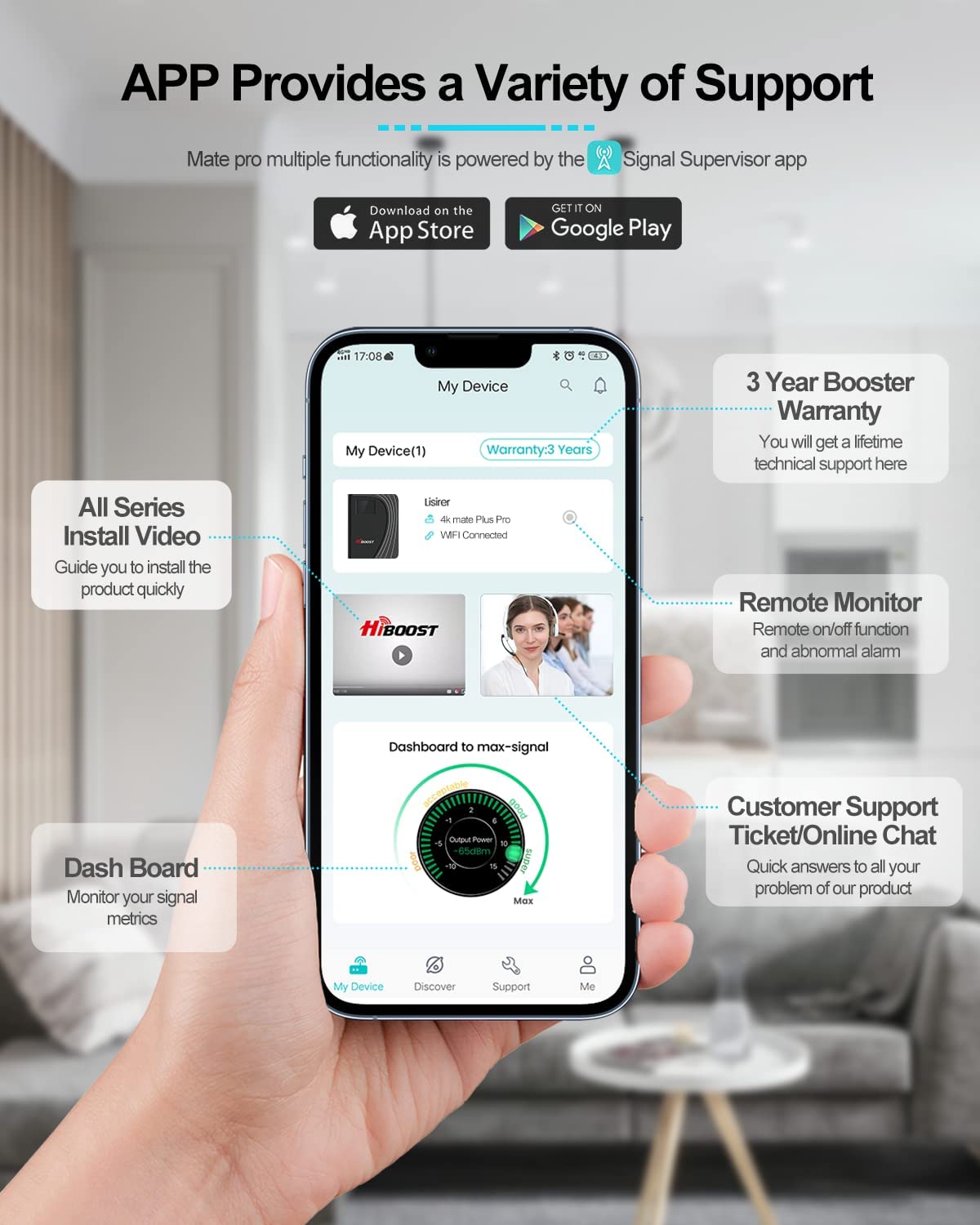 HiBoost APP – Makes DIY installation even easier with step-by-step instruction. Find the nearest tower. See your signal strength before and after installation.