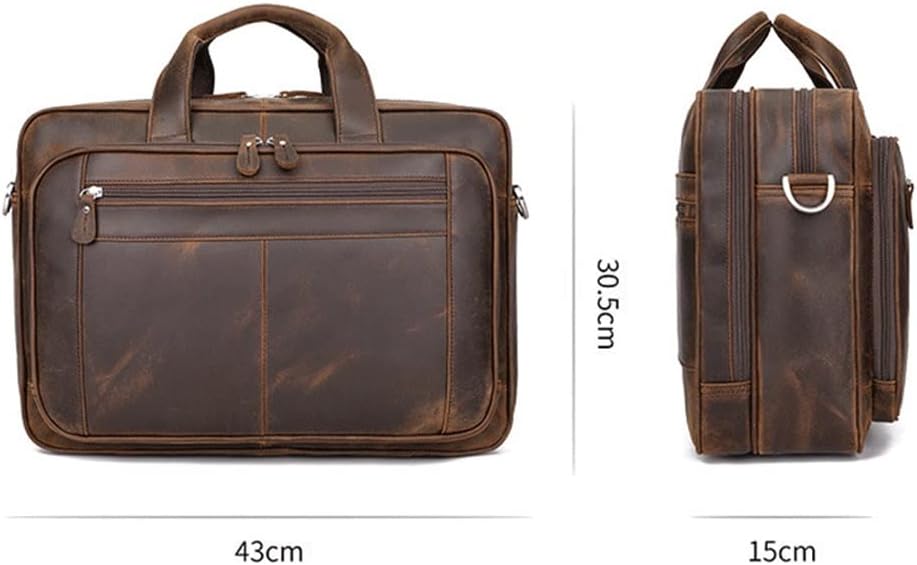Men's Leather Briefcase Crazy Horse Leather 17" Laptop Business Tote Men's Tote Large Shoulder Bag.