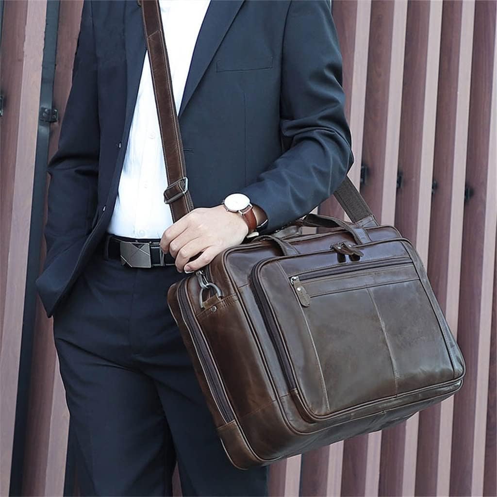 XFGDE Leather Briefcase for Man Crazy Horse Leather 17 inch Laptop Business Handbag Cowhide Male Tote Big Shouler Bags (Color : Black)