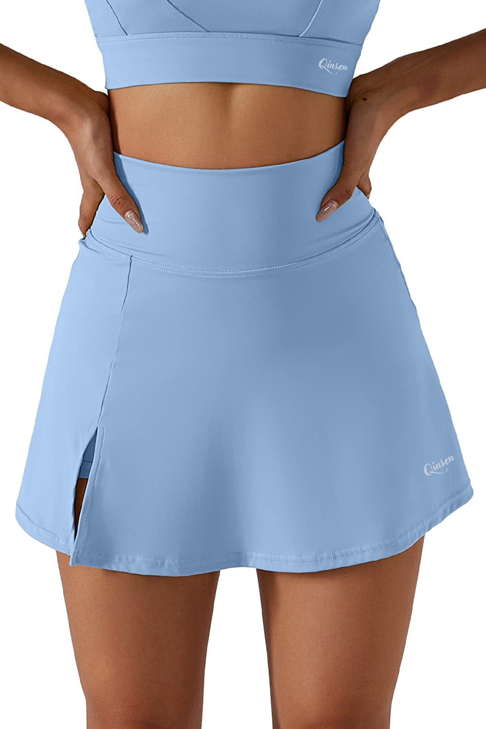 QINSEN Women's Tennis Skirts Stretch High Waisted Golf Skorts Running Sports Workout Activewear