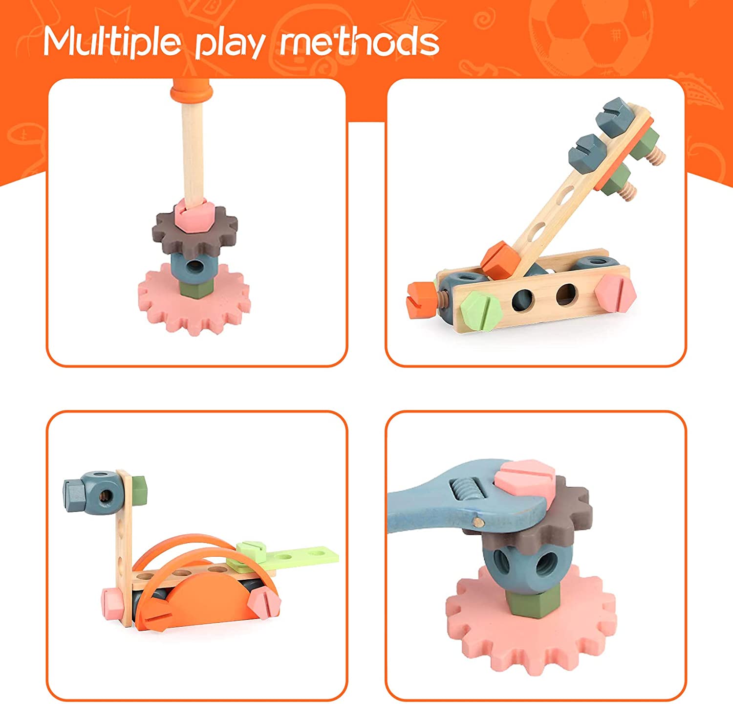 ⭐[Product Features]- Simulation tools, complete equipment, wooden toy wrench, ruler, hammer, screw, screwdriver, gear and so on. Children can experience the real fun of building by tapping, twisting, turning and measuring. Tools with different colors attract children's interest and improve creativity. Wooden toys.