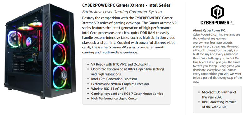 Destroy the competition with the CYBERPOWERPC Gamer Xtreme VR series of gaming desktops. The Gamer Xtreme VR series features the latest generation of high performance Intel Core processors and ultra-quick DDR RAM to easily handle system-intensive tasks, such as high definition video playback and gaming. Coupled with powerful discreet video cards, the Gamer Xtreme series provides a smooth gaming and multimedia experience.