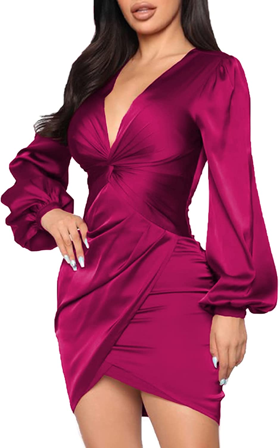 Design:The Tight Wrap Front V-Neck Dresses Features a Stretch Fabric,Ruched Sleevesless But Ruffled Hemline With Sexy V-Neck Ruched Details in Front and Back, Irregular Bevel Hem Lengthen Leg