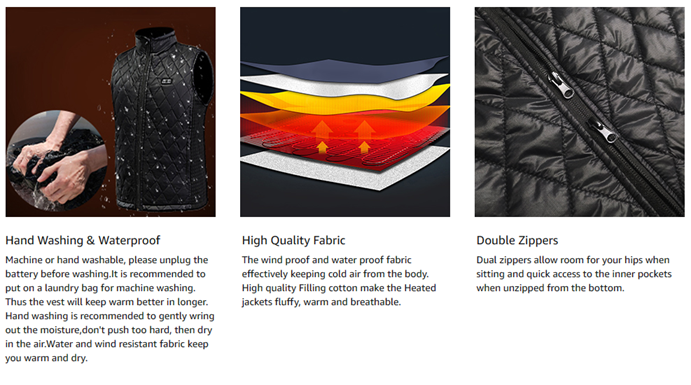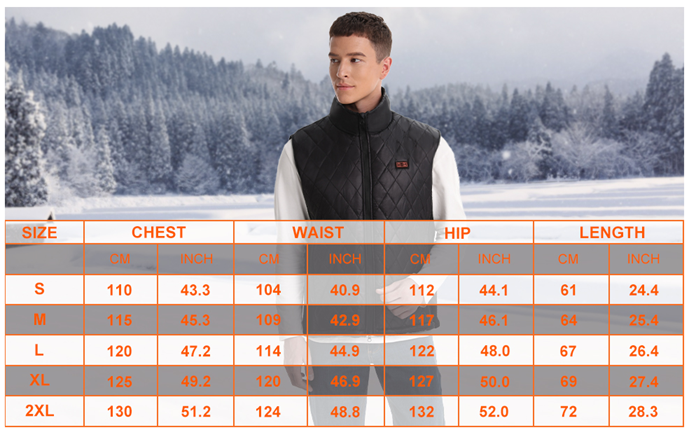 - Customer Service -Please check the size chart before purchasing, if you don't know what to choose, please contact us via email. Any questions with our heated vests , please feel free to contact us via email, we will do our best to help you solve the problem in 24 hours.