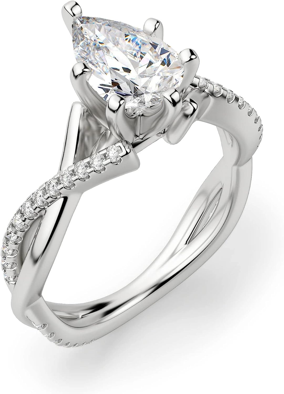 Siyaa Gems 4.50 CT Pear Cut Colorless Moissanite Engagement Ring Wedding Band Gold Silver Eternity Solitaire Ring Halo Ring Vintage Antique Anniversary Promise Gift Her, Designer Bridal Ring