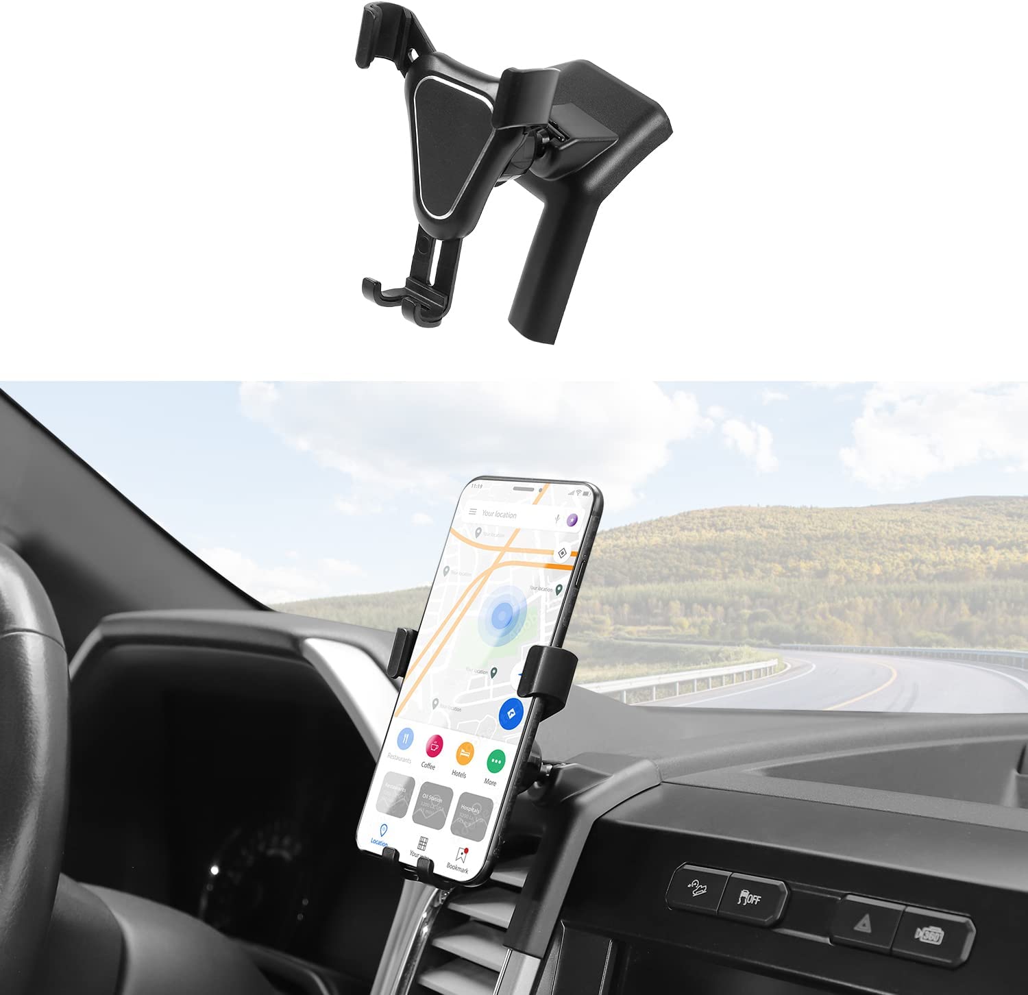 • UNIVERSAL COMPATIBILITY -- This Compatible with Ford F150 phone mount has the longest opening distance of 4.2 inches and the shortest distance of 2.65 inches. By adjusting the opening size, it can expand to fit most phones and cases, including iPhones and similarly-sized Android devices.