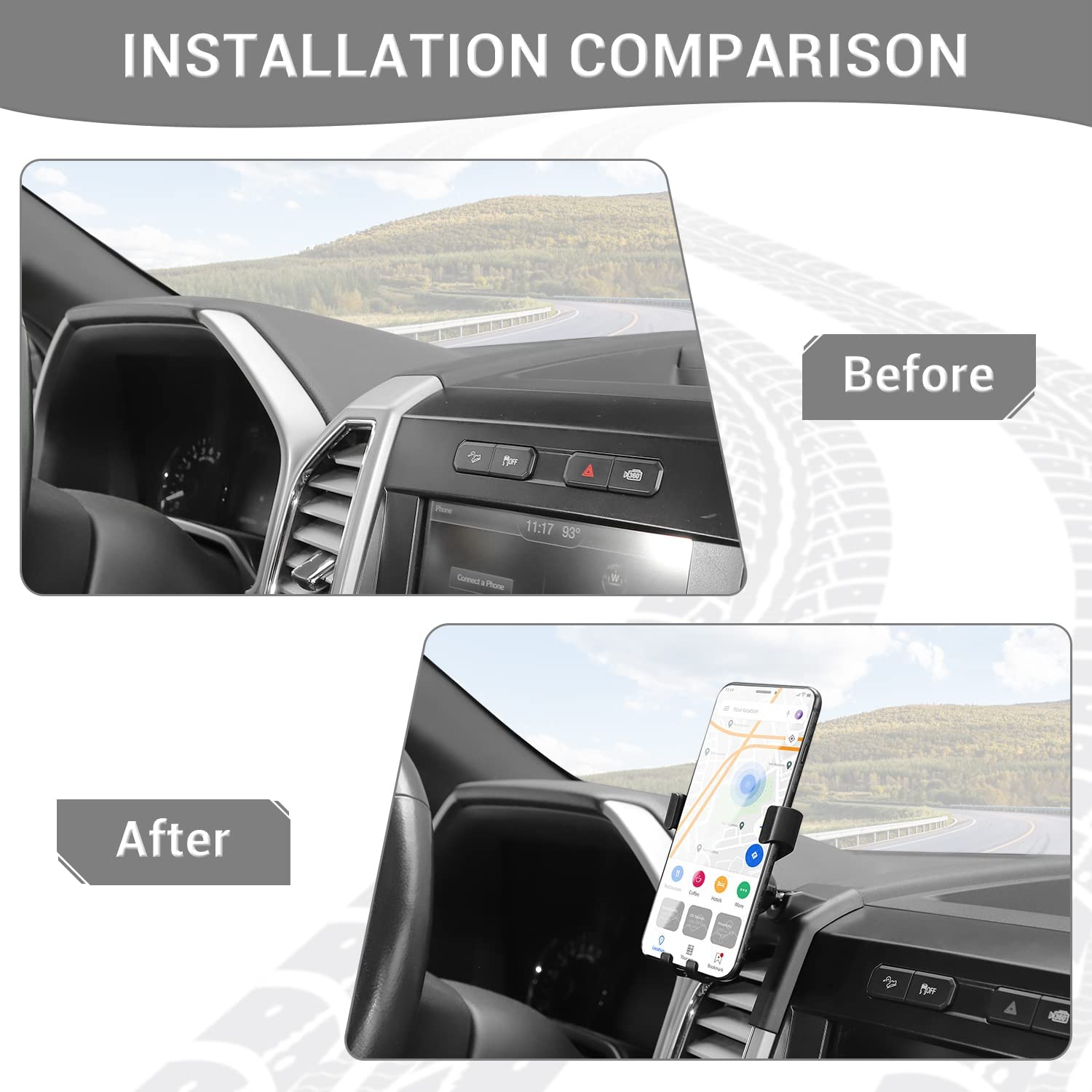 • FITMENT -- PDKLIN for F150 phone holder is designed for 2015 2016 2017 2018 2019 2020
