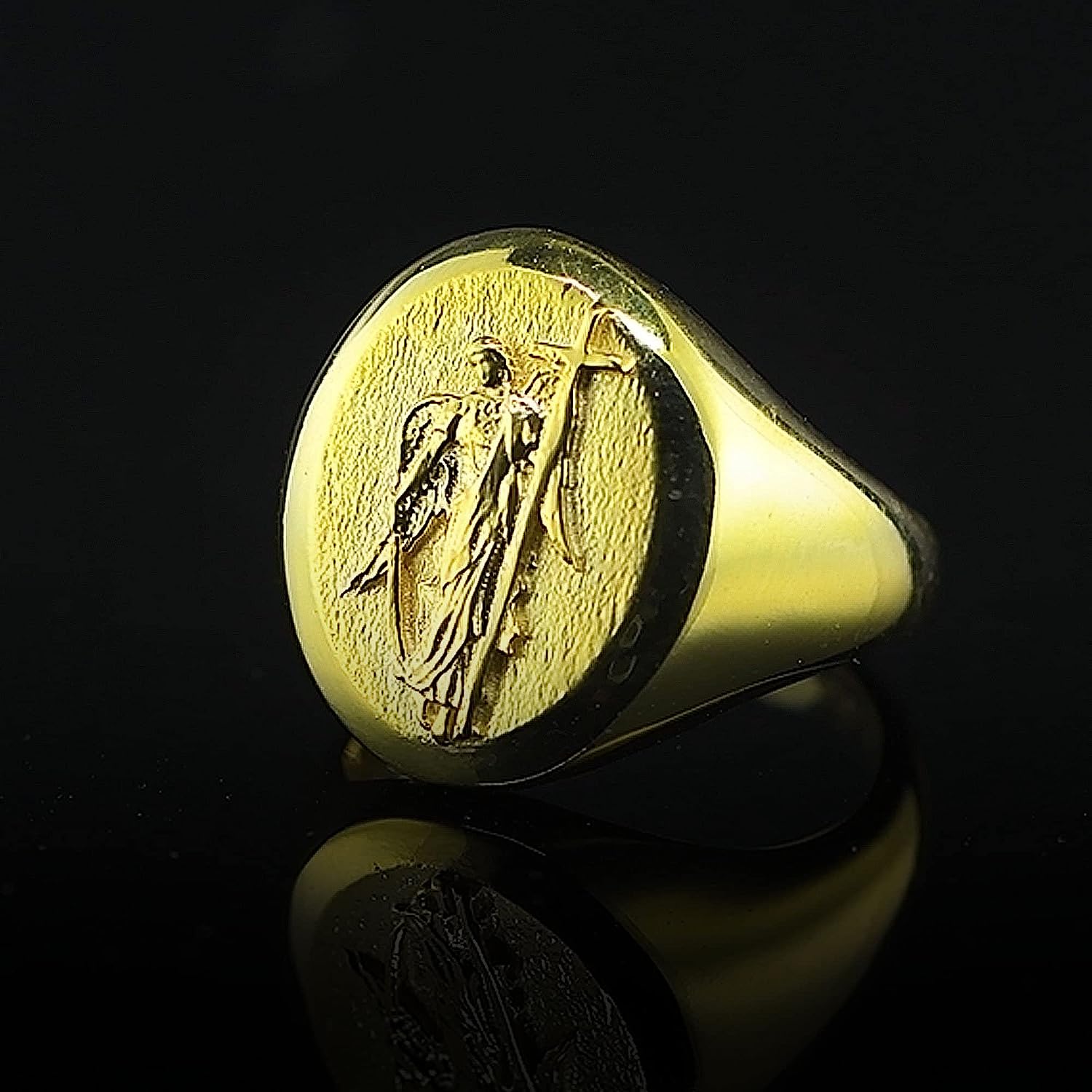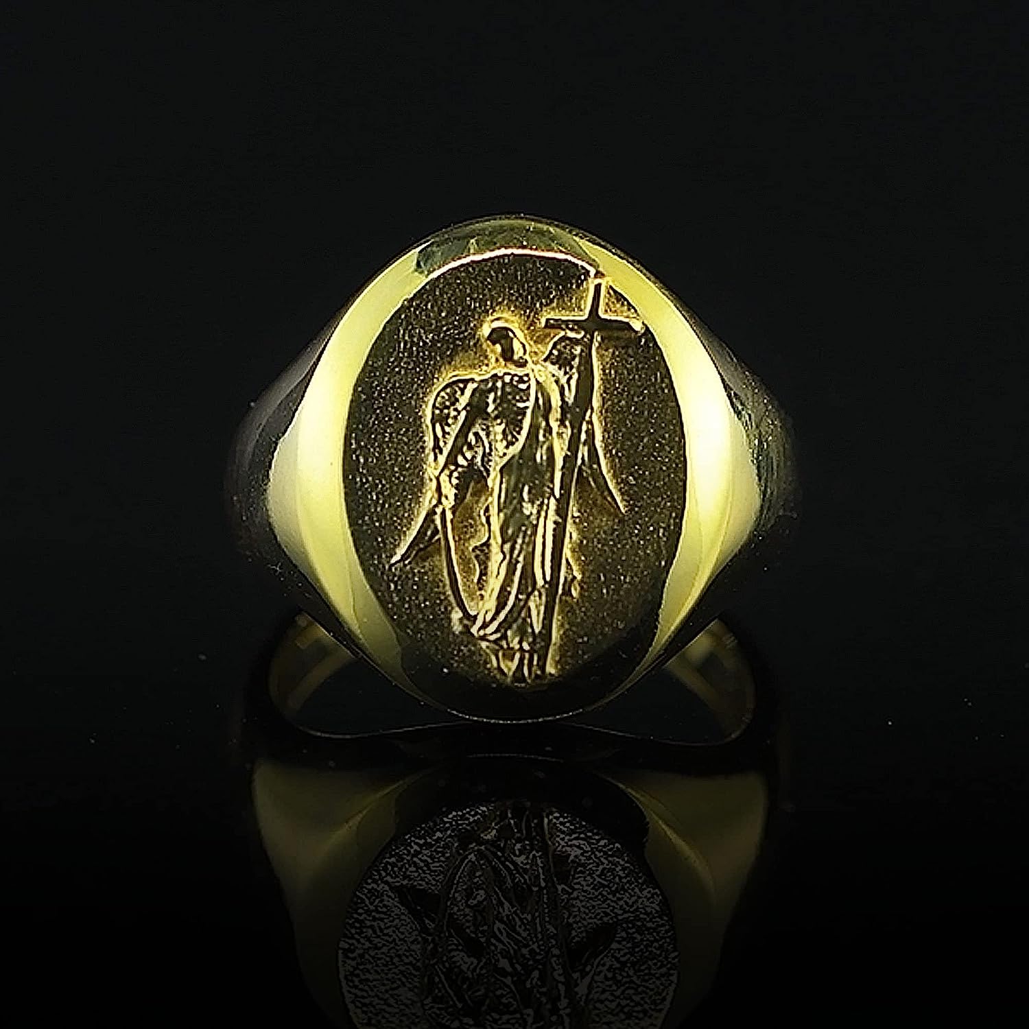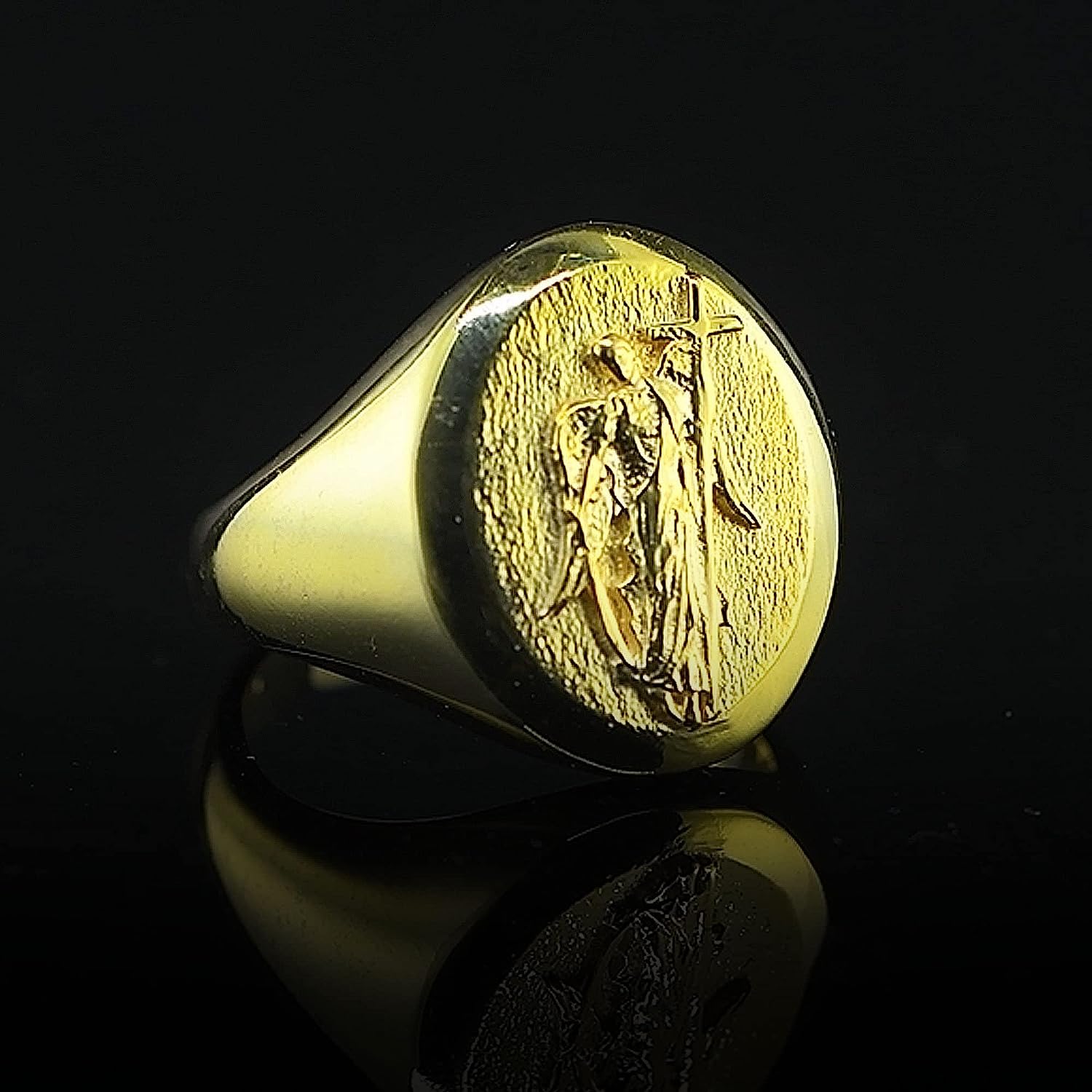 10K Gold Saint Gabriel The Archangel of Truth Ring | Religious Christian 18K Gold Band Ring | 14K Gold Ring Handmade Jewelry Men Women Gift