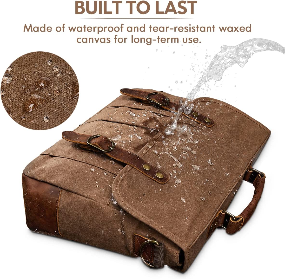 Mens Messenger Bag 15.6 Inch Waterproof Vintage Genuine Leather Waxed Canvas Briefcase Retro Office Computer Laptop Bag Large School Satchel Shoulder Bag for Men Women, Brown