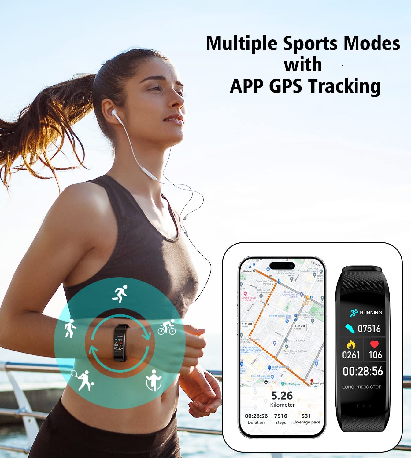 【All-day Activity Tracking and Multiple Sports Modes】Bestinn activity & fitness trackers track all day’s activity including steps, distance and calories burned to help you achieve your fitness goals more efficiently. Besides, it could tracks 5 specific sports mode such as runinng, cycling and skipping for real-time heart rate, steps, distance, calories burned, time of duration. You could get a map of your workout route and pace in app during outdoor activity by connecting to your phone gps.