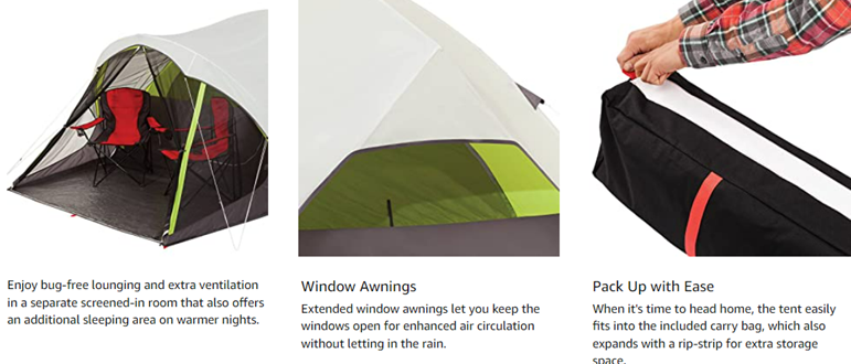 • 6-person dome tent features a separate screen room for insect-less lounging and extra sleeping space