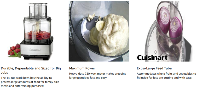 The Cuisinart DFP-14BCNY custom food Processor has an extra-large Feed tube that holds whole fruits and vegetables. Features a 14-Cup work bowl, 4mm stainless steel Medium slicing disc, stainless steel shredding disc, and chopping/mixing blade. Includes a spatula and recipe book.