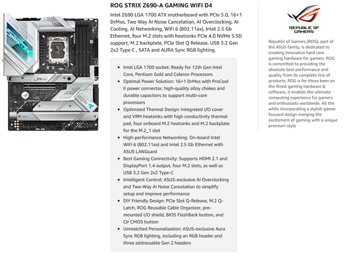 Item model number‎ROG STRIX Z690-A GAMING WIFI D4