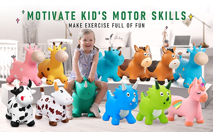 Bouncy horse are great for helping toddlers develop their motor skills, balance, and coordination. As they bounce on the toy, they are using their leg muscles to propel themselves upward and maintain balance. This helps strengthen their leg muscles and improve their balance and coordination.