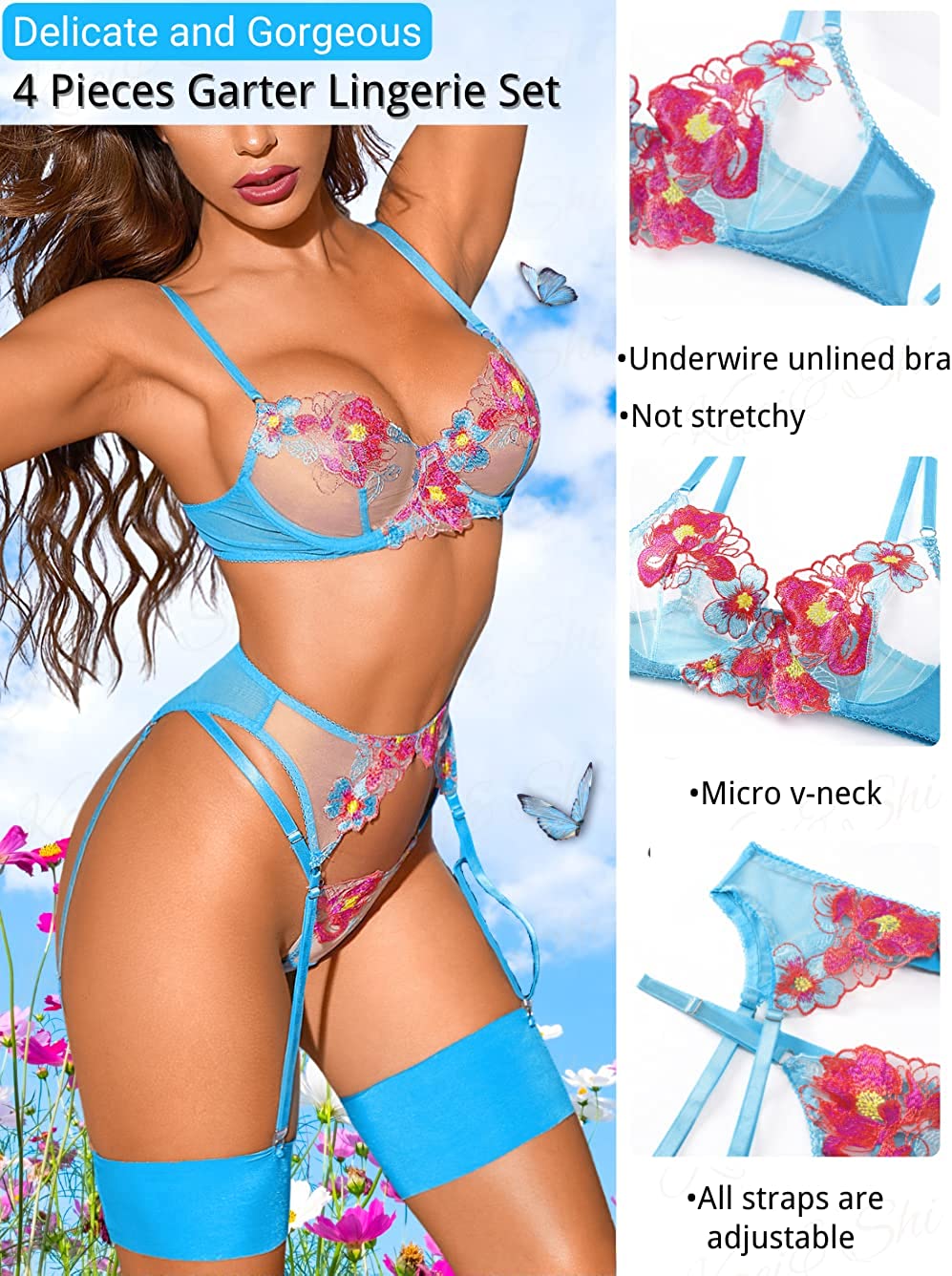 • ✿Fabric: Kaei&Shi 4 piece lingerie is made of soft lace fabric, high-quality material will make you comfortable to wear.