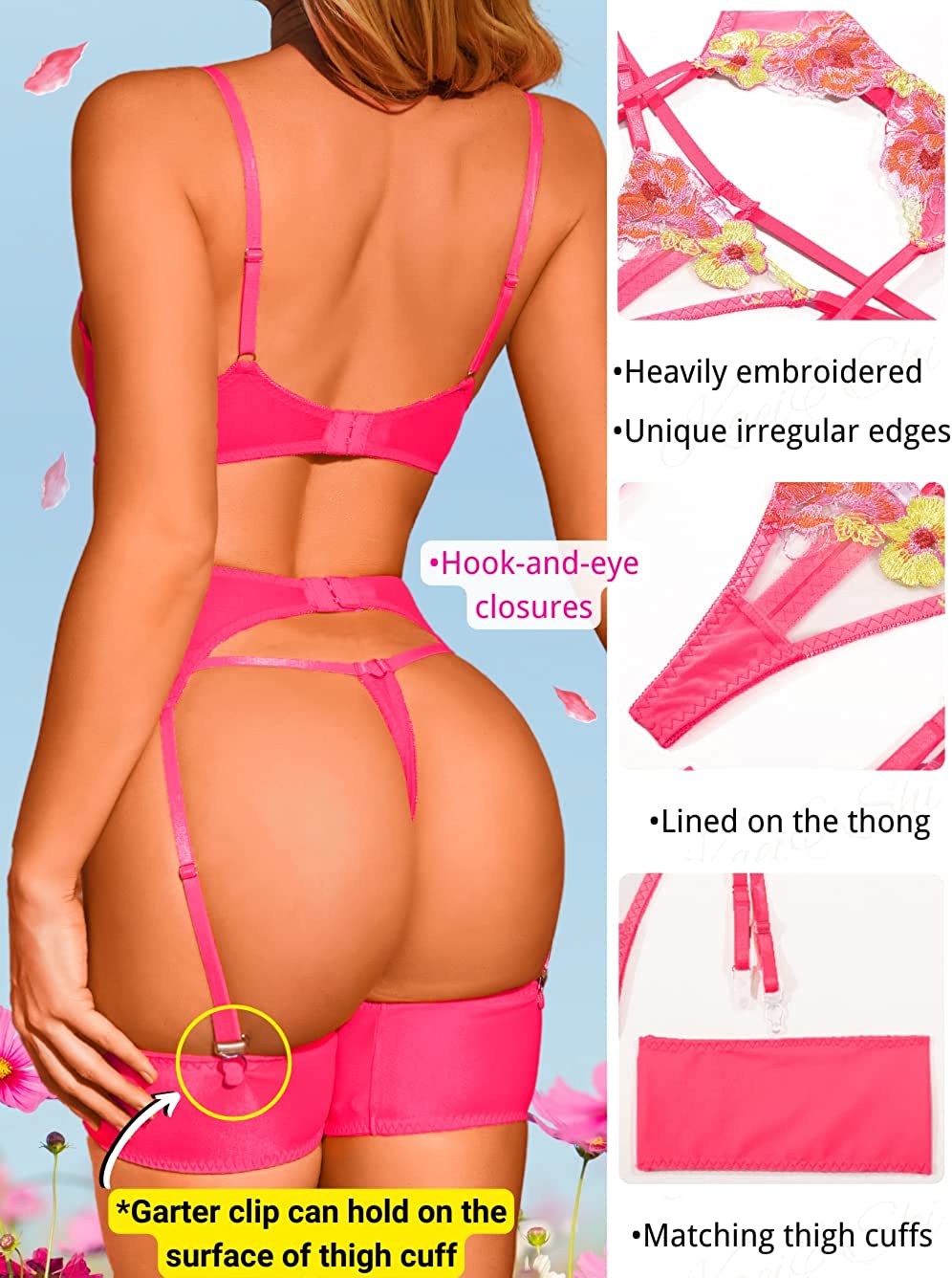 • ✿Feature: This matching lingerie set features with spaghetti strap, garter belt, sheer mesh to show your curve beautifully.