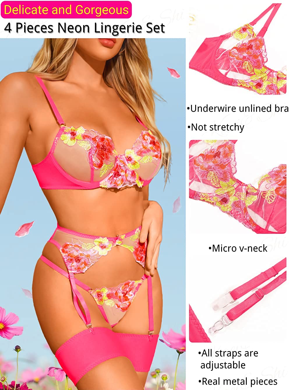 • ✿Style: This underwire lingerie with delicate floral embroidery can enhance femininity and outline your sexy breast lines.