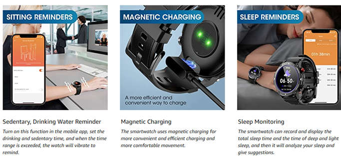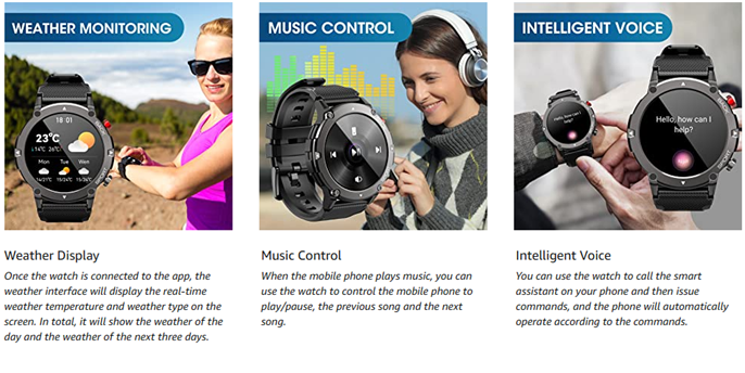 • ⌚【ALL-ROUND MANAGEMENT】- The smart watch can provide saturation measurement, sleep monitoring, as well as other functions to achieve total management from your wrist. All data can be synchronized to your phone for analysis and to help you create a scheduled routine to meet your goals.