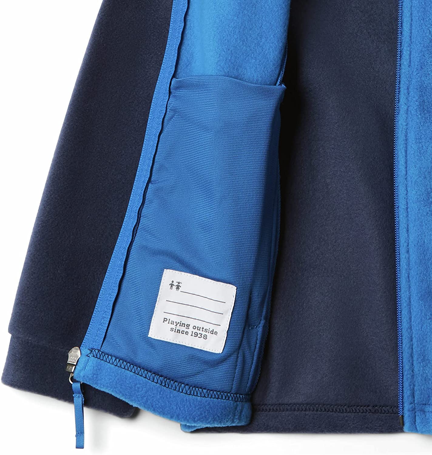 This full-zip fleece jacket is the perfect addition to their everyday wear—whether worn alone or as an extra layer. Your boy will be warm and care-free in this jacket crafted from our super deep 250g fleece. Whether worn on its own, or used as layer, your child will find great 3 season use in this everyday coat. Columbia offers this boy’s jacket in multiple colors and sizes. Regular Fit. To ensure the size you choose is right, utilize our sizing chart and the following measurement instructions: For the sleeves, start at the center back of your neck and measure across the shoulder and down to the sleeve. If you come up with a partial number, round up to the next even number. For the chest, measure at the fullest part of the chest, under the armpits and over the shoulder blades, keeping the tape measure firm and level.