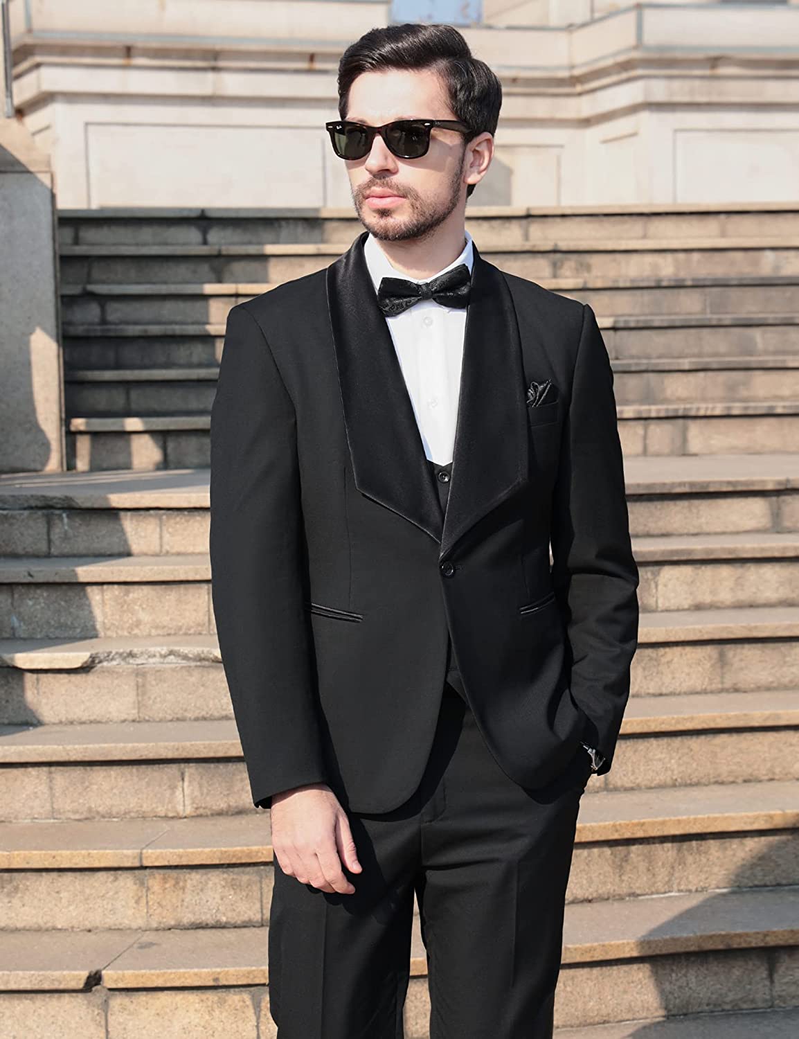 EXQUISITE WORKMANSHIP: Clashing Satin Shawl Collar,Upscale Button and Cut With 3D Draping. The Slim Fit Style Makes You Look Modern and Sharp.