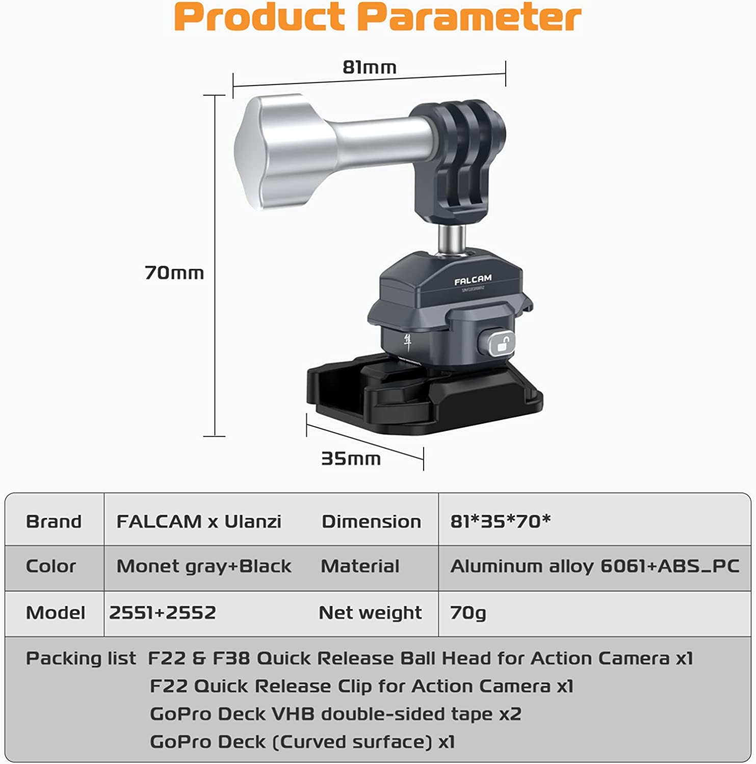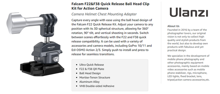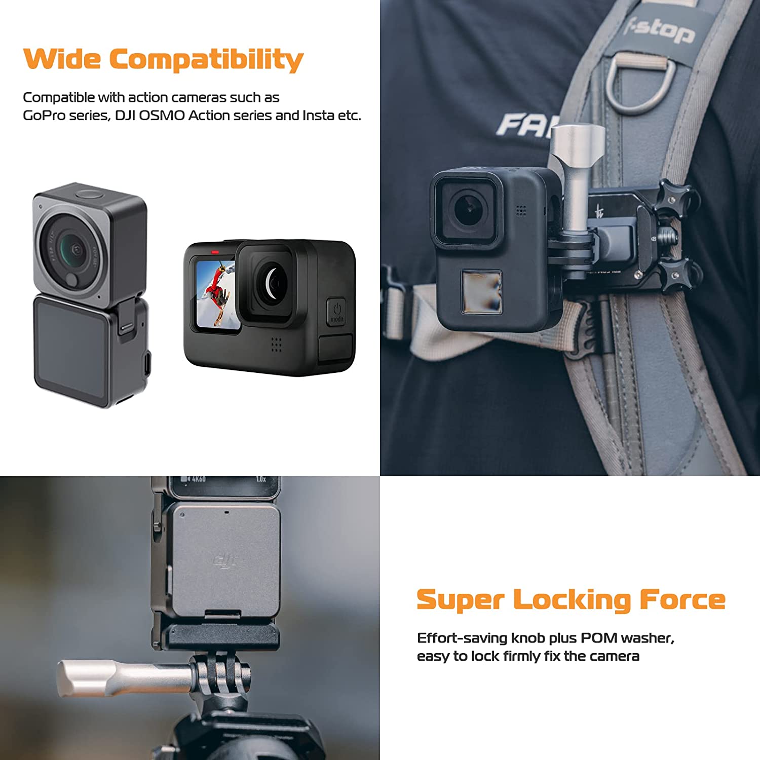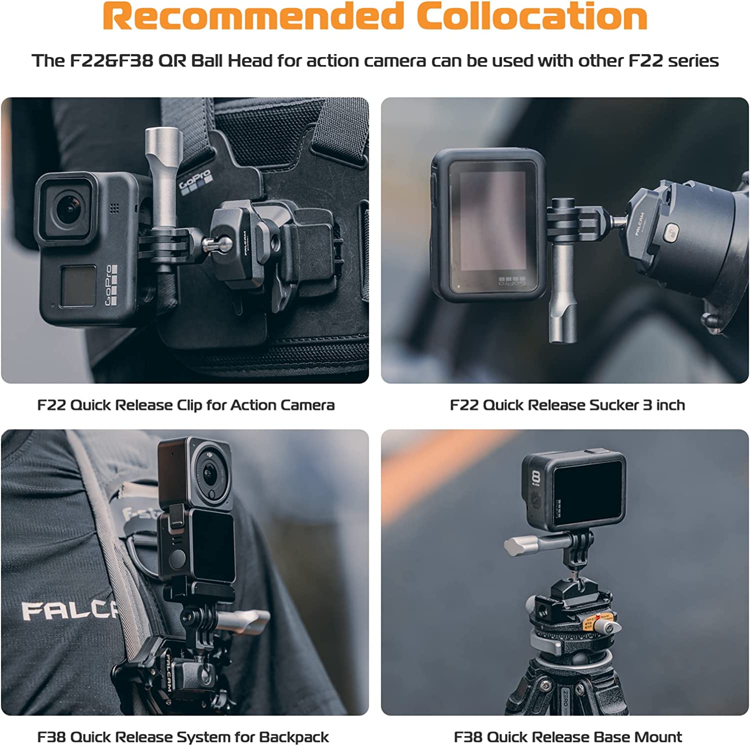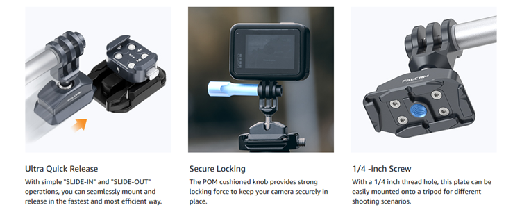 • Ultra Quick Release - F22&F38 quick release kit for action camera, cleverly blend the ancient Chinese mortise and tenon with modern mechanical structure. A push to install, a press to remove, incredibly fast. With simple "SLIDE-IN" and "SLIDE-OUT" operations, you can seamlessly mount and release in the fastest and most efficient way.