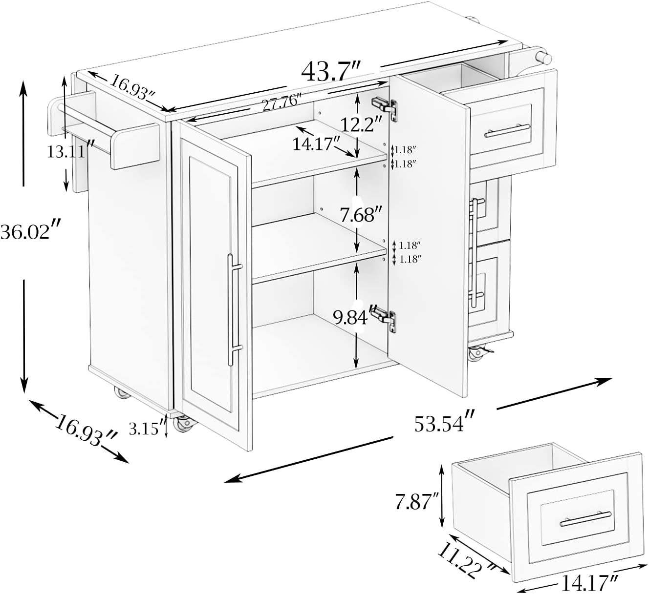 • Multifunctional: its large cabinets with double-door design divide the space allocation to meet your needs. For storing dishes, pots and pans and other small appliances. Expandable leaf top.