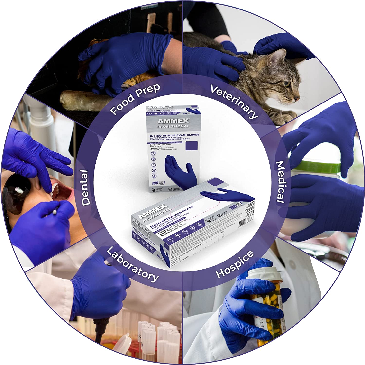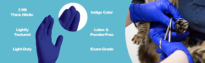 Ammex Indigo Nitrile Exam Gloves, 3 Mil, Latex Free, Powder Free, Textured, Disposable, Non-Sterile, Food Safe