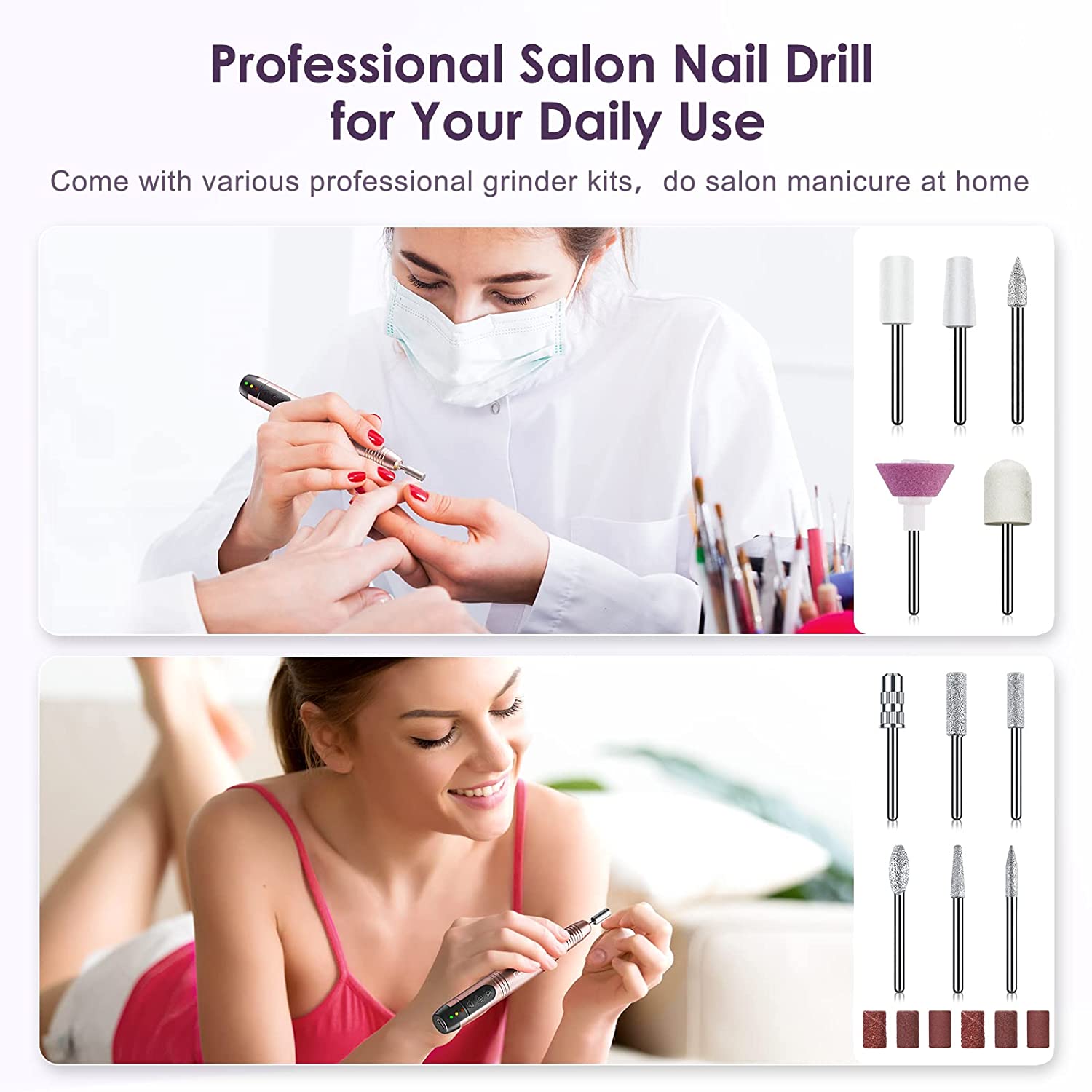 Multifunctional for Mandicure & Pedicure: With adjustable speeds and forward/reverse direction options, this nail drill machine comes with various professional grinder bits, you can customize your various manicure and pedicure routine to your liking: acrylic nails, gel nails, dip powder nails, cuticle and dead skin, calluses, thick nails and any other nail care needs