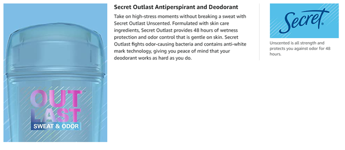 - Don't waste a moment worrying about sweat. Secret Outlast Antiperspirant Deodorant is all strength, no sweat