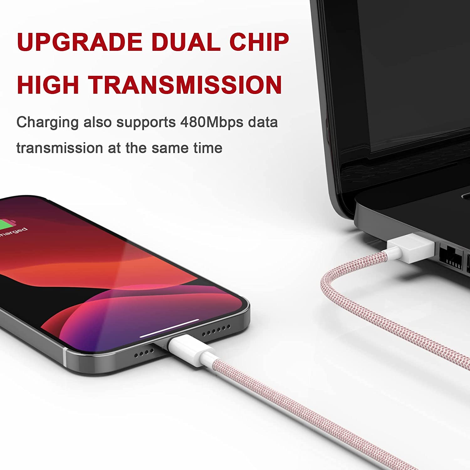 - 【MFi Certified Lightning Cable】: Certified Chipset Integrated Security and Four-Wire Copper Cable for Improved Signal Quality and Strength, Higher Loading and Data Transfer Speeds of up to 480 Mb / S.High-Quality Copper Cables ensures faster and more stable charging, and will increase battery life.
