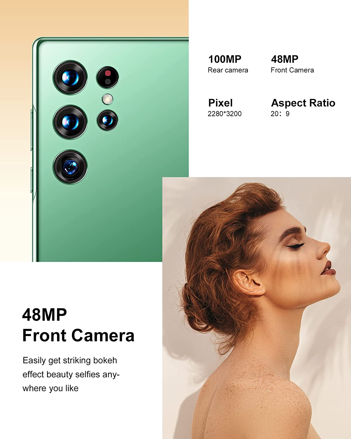 【7.3 Inch HD+ 48/100MP Cellphones 】7.3 "Max Vision HD+Display, with 90 Hz refresh rate. Making games, movies and video chat faster and smoother on the ultra-wide screen. C21s Android 11 Cellphone with 48MP front camera, 100MP rear camera autofocus, you can take amazing photos in any light, as well as beautiful blurred portraits and incredible detail close-ups.