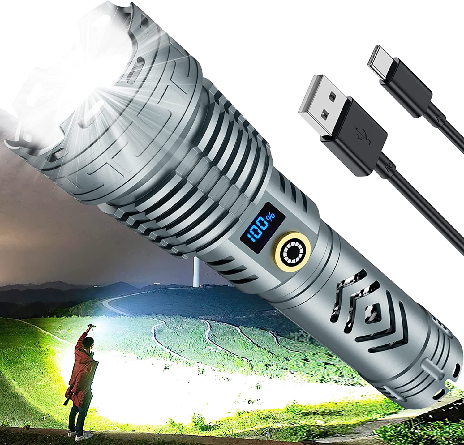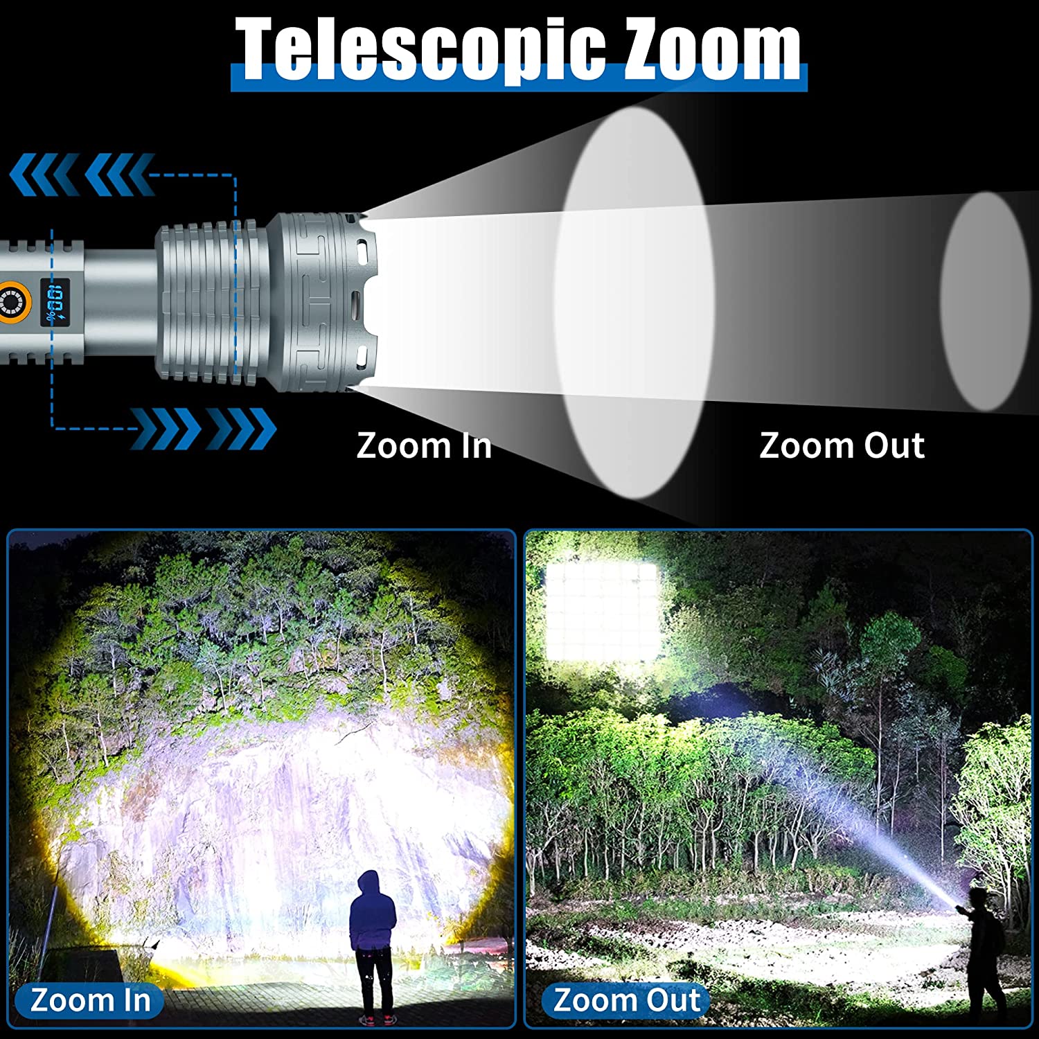 Zavuxo Flashlights High Lumens Rechargeable LED Flashlight, Super Bright Tactical Flashlights 180000 Lumens Handheld Flashlights with 5 Modes, Zoomable, Waterproof Flashlights for Emergencies Camping