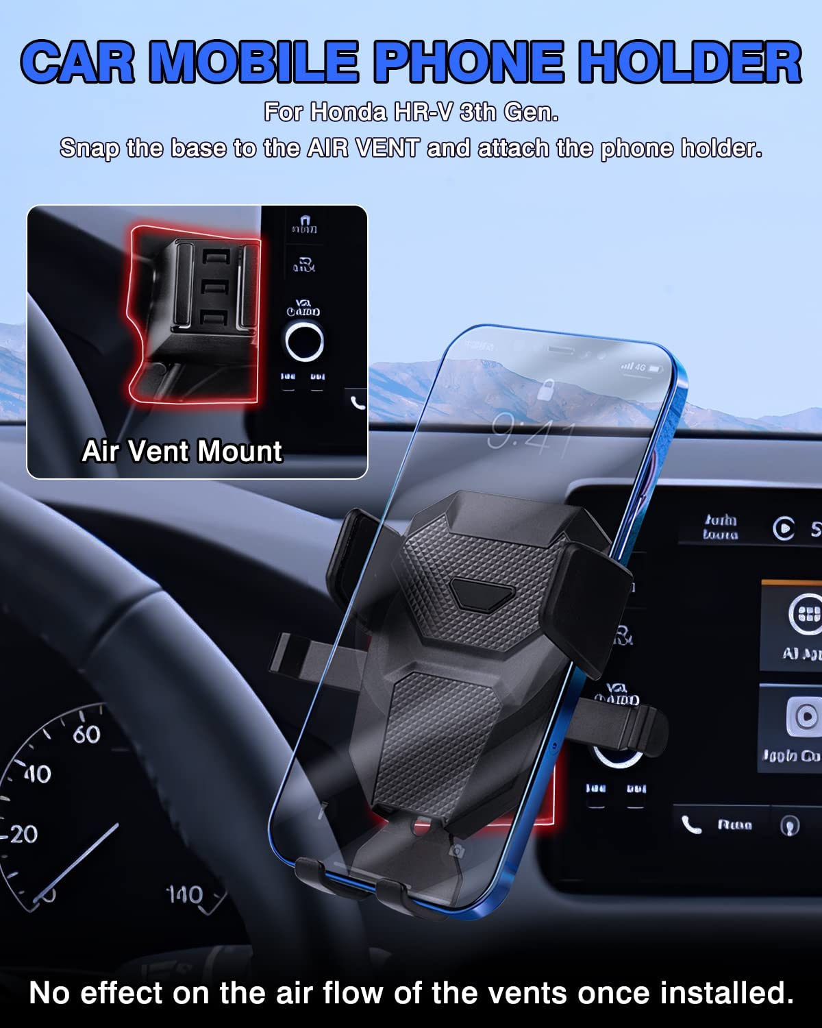 • 【Custom Fit for HR-V】The phone holder is a custom fit for Honda HR-V 2023 HRV. Fits snugly and snaps perfectly to the air vent, and holds your phone firmly in any conditions.