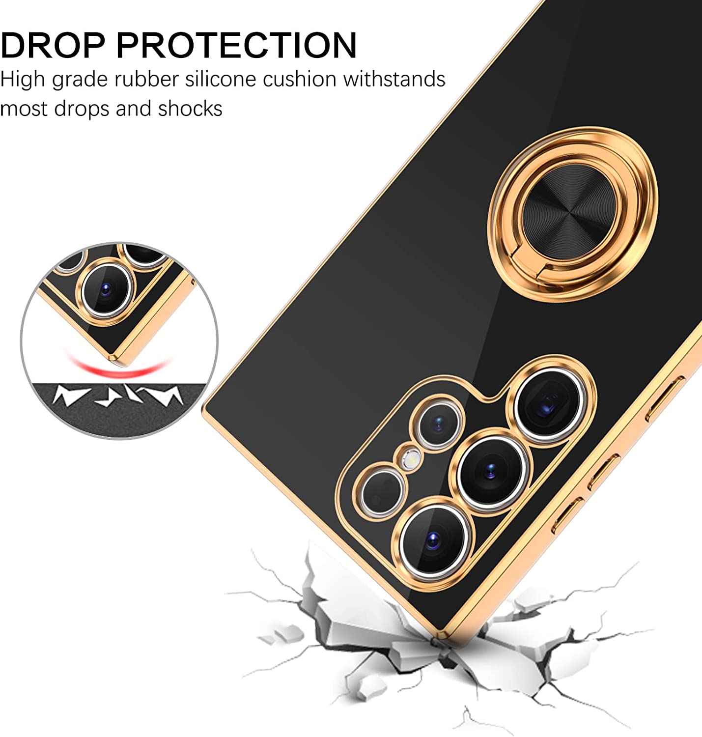 BENTOBEN Compatible with Samsung S23 Ultra Case with 360° Ring Holder, Shockproof Slim Kickstand Magnetic Support Car Mount Women Men Protective Phone Case for Samsung Galaxy S23 Ultra, Black/Gold