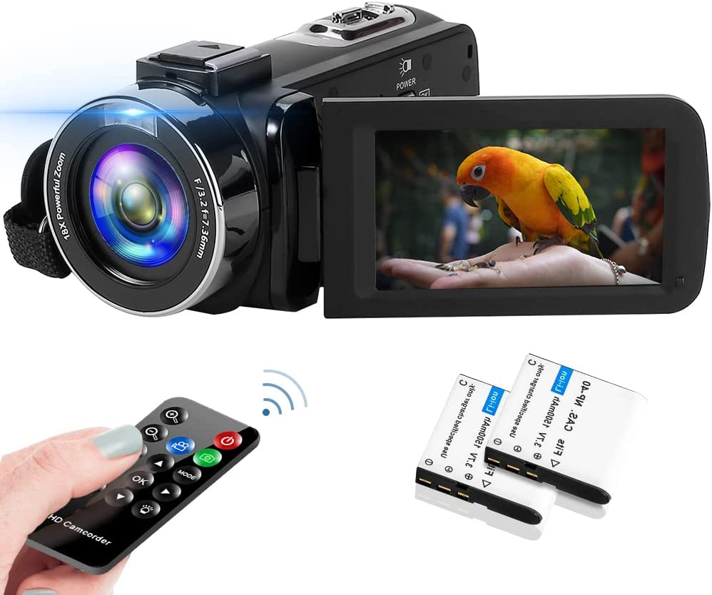 Built-in LED Fill Light & Two Batteries: Uniquely designed to work perfectly under low light condition. This video camcorder is equipped with LED Fill Light for vision shoot. The digital camera comes with two 1500mAh 3.7V rechargeable batteries. One full-charged battery can be used for 60-90 minutes. Also, you can record videos while charging, in this case, you can record long enough videos as you wish and no need to worry about battery drains.