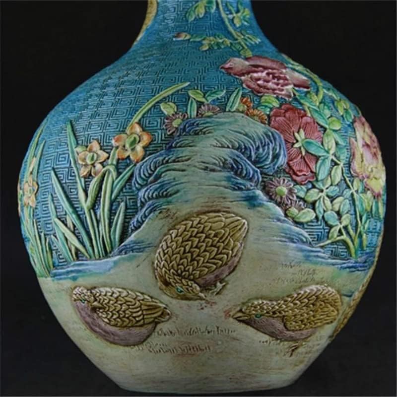QUUL Classic Green Ceramic Vase Embossment Antique Porcelain Flower Vase for Decoration