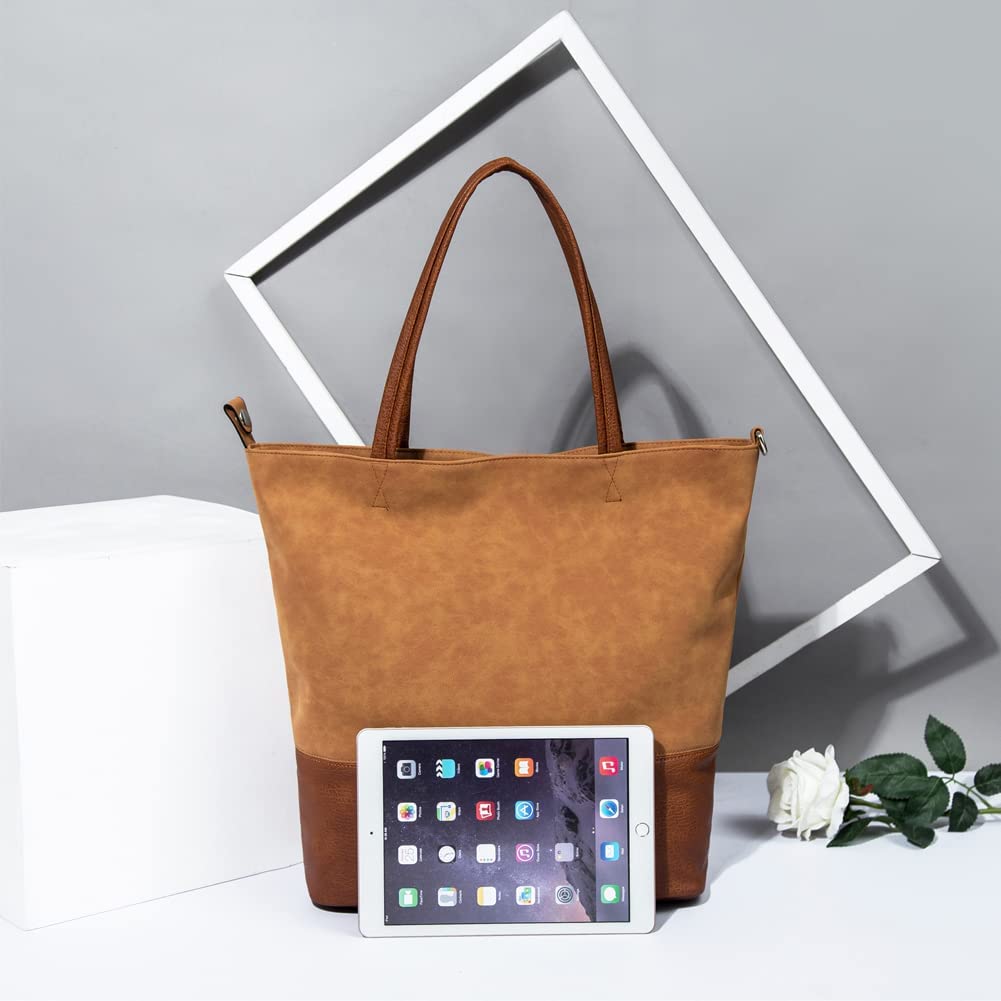 ?[MATERIAL]: The soft leather handbag is made of faux suede, a durable, animal-friendly and easy to clean alternative to real suede. Its simple yet elegant design is spacious enough to carry your laptop or iPad.