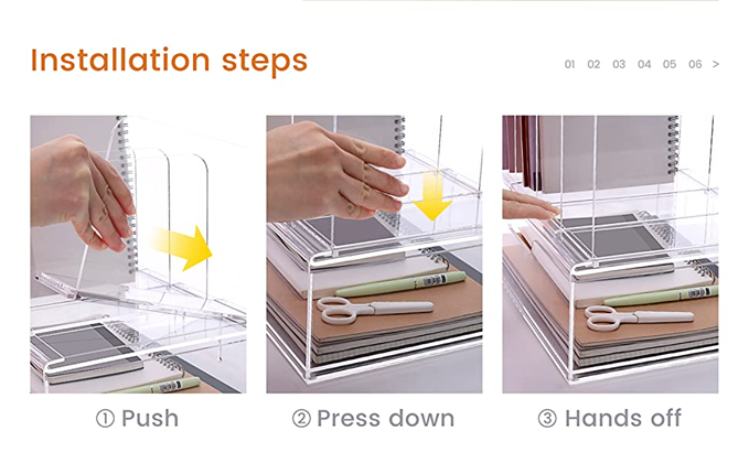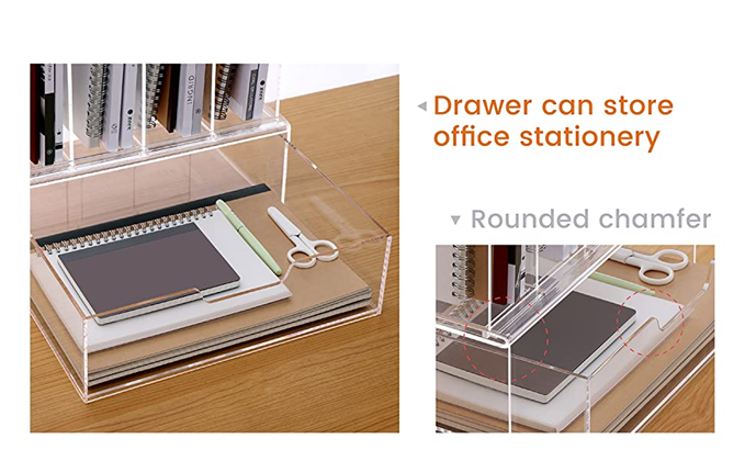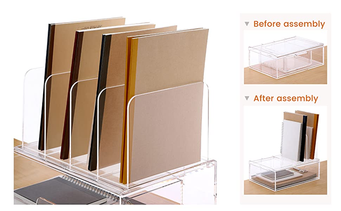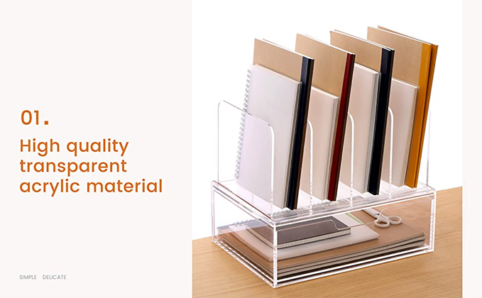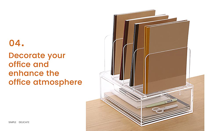 • High quality material: This desk organizer and accessories are manufactured using 0.4" extra thick clear acrylic, with tough weight-bearing capacity and durable desktop organization, Transparent acrylic materials make documents easy to find, so you can always find the information you need. we guarantee the finest quality and the best customer experience