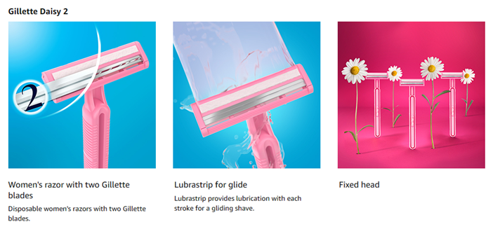 Gillette Daisy Classic disposable razors for women have a fixed non-pivoting head, twin comfort blades, a moisture-smooth lubrastrip and comfort handle to give you a close shave. Gillette comfort razor blades are thin to glide effortlessly for a smooth shave and the comfort handle is designed for a secure grip. The Lubrastrip provides lubrication with each stroke for a gliding shave. Use and replace when ready, the Daisy Classic disposable razors don’t require any refills; just use and replace when you’re ready for a new one. Daisy Classic is a simple way to get a great shave. Each package contains 18 Daisy Classic women's disposable razors in pink. A great value for a great shave.