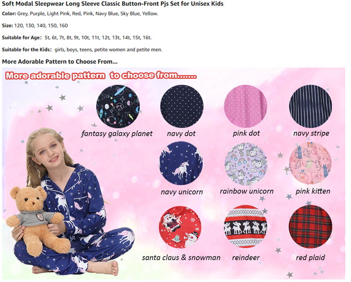 Material: Made of soft comfy modal and cotton fabric. Cozy, comfortable, skin-friendly, lightweight and natural breathable. Fit for 5-14 years girls and boys.