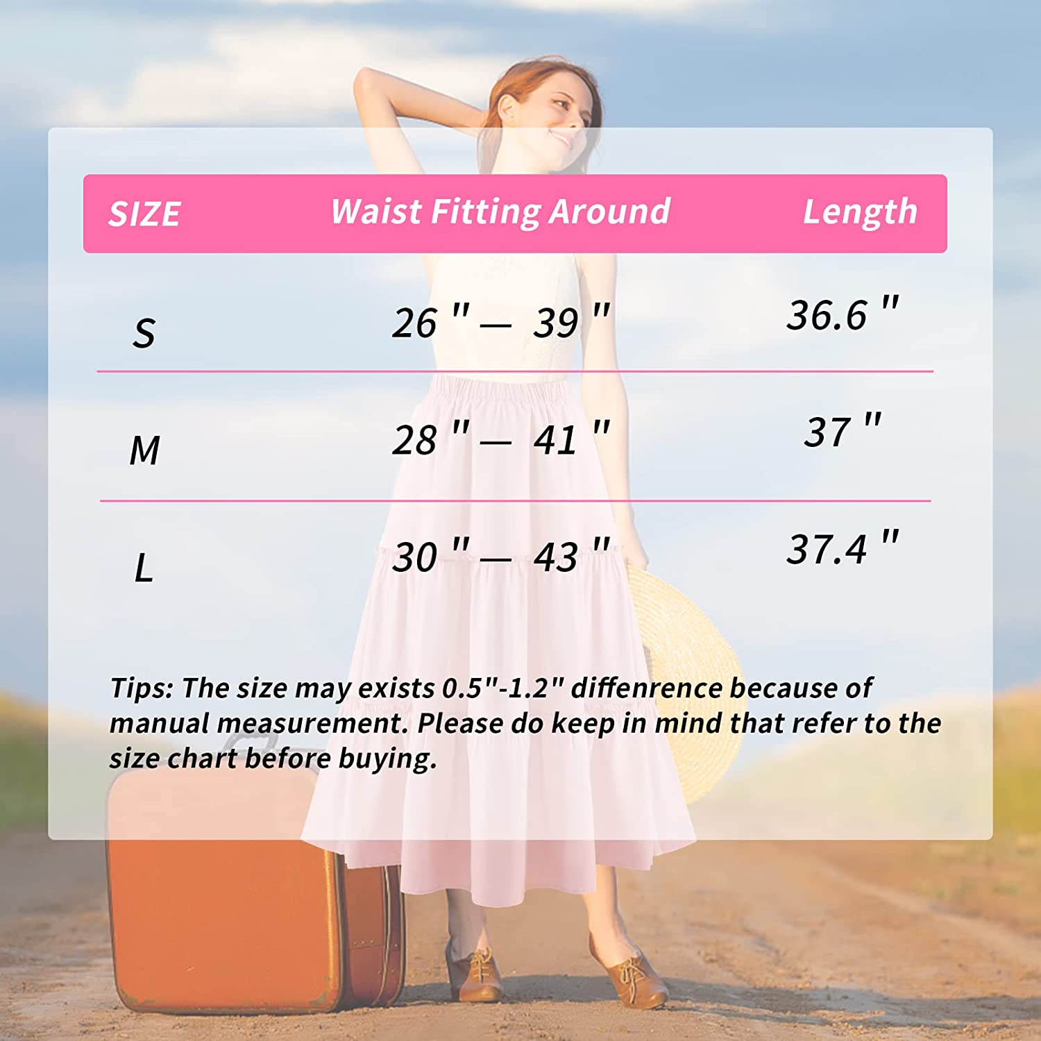 Suitable Size: Waistline: S can be stretched from 26 to 39 inch; M can be stretched from 28 to 41 inch; L can be stretched from 30 to 43 inch. Skirt Length: S approx 36.6; M approx 37 inch; L approx 37.4 inch. The highly elastic waistband ensures a comfortable fit across a wide range of sizes.